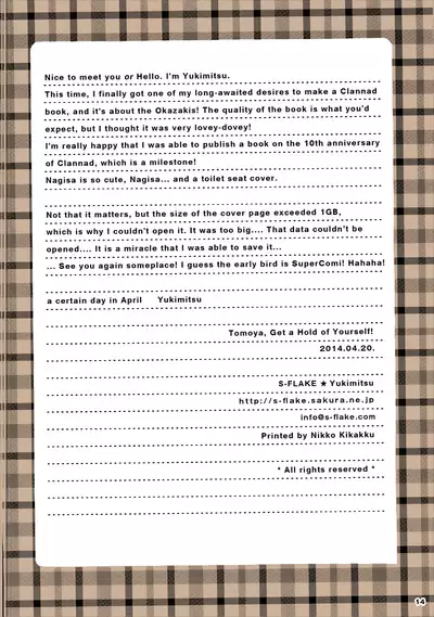 (Hikarizaka Koukou Souritsushasai) [S-FLAKE (Yukimitsu)] Tomoya Shikkari Shinasai! (Clannad)